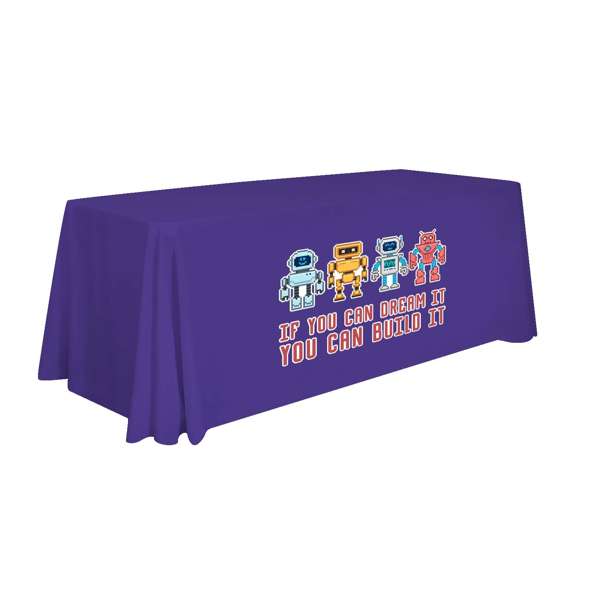 • Artwork is imprinted on the front of the table throw