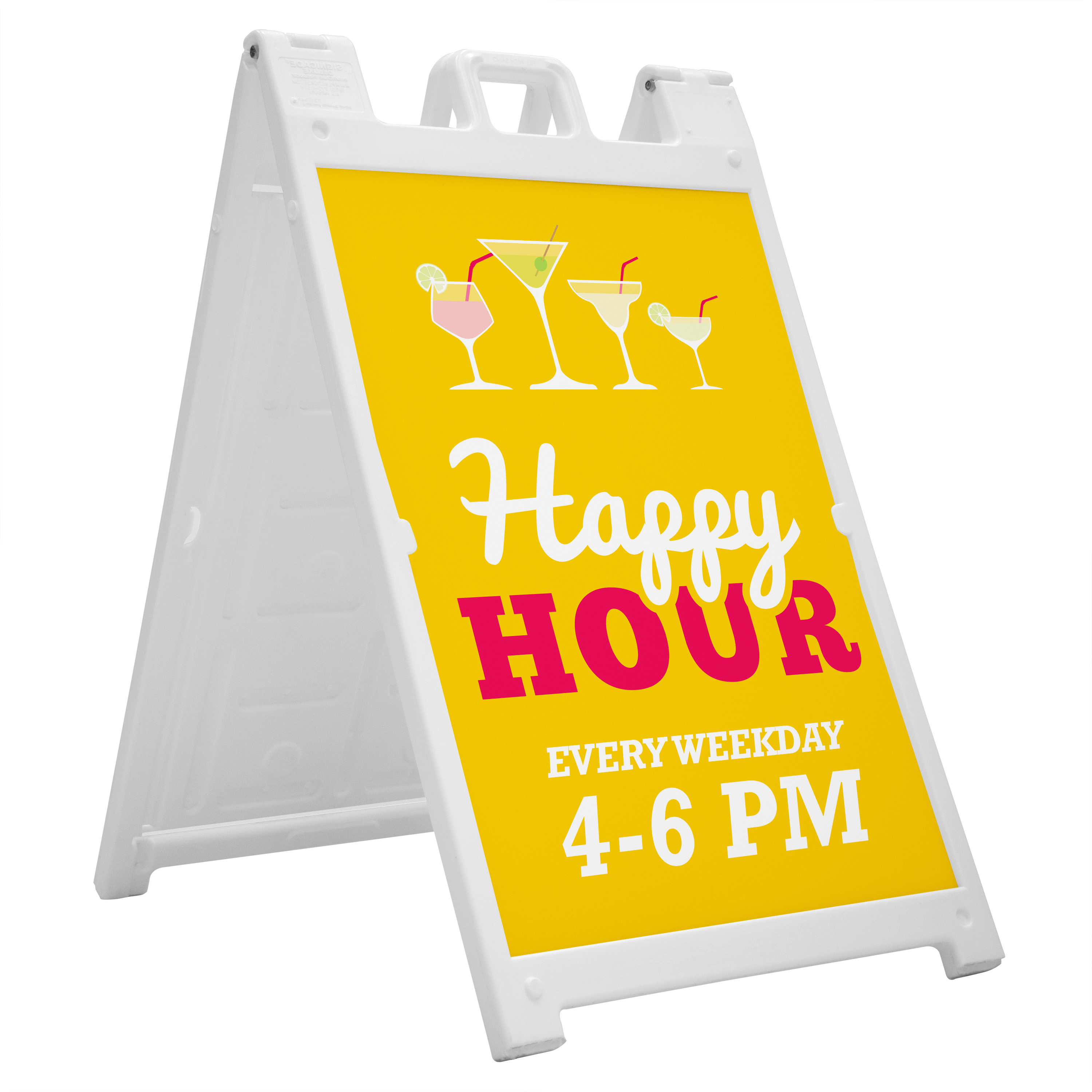 This A-frame is a larger version of the classic Signicade. Its plastic frame is maintenance-free and weather-resistant, making it perfect for outdoor use.