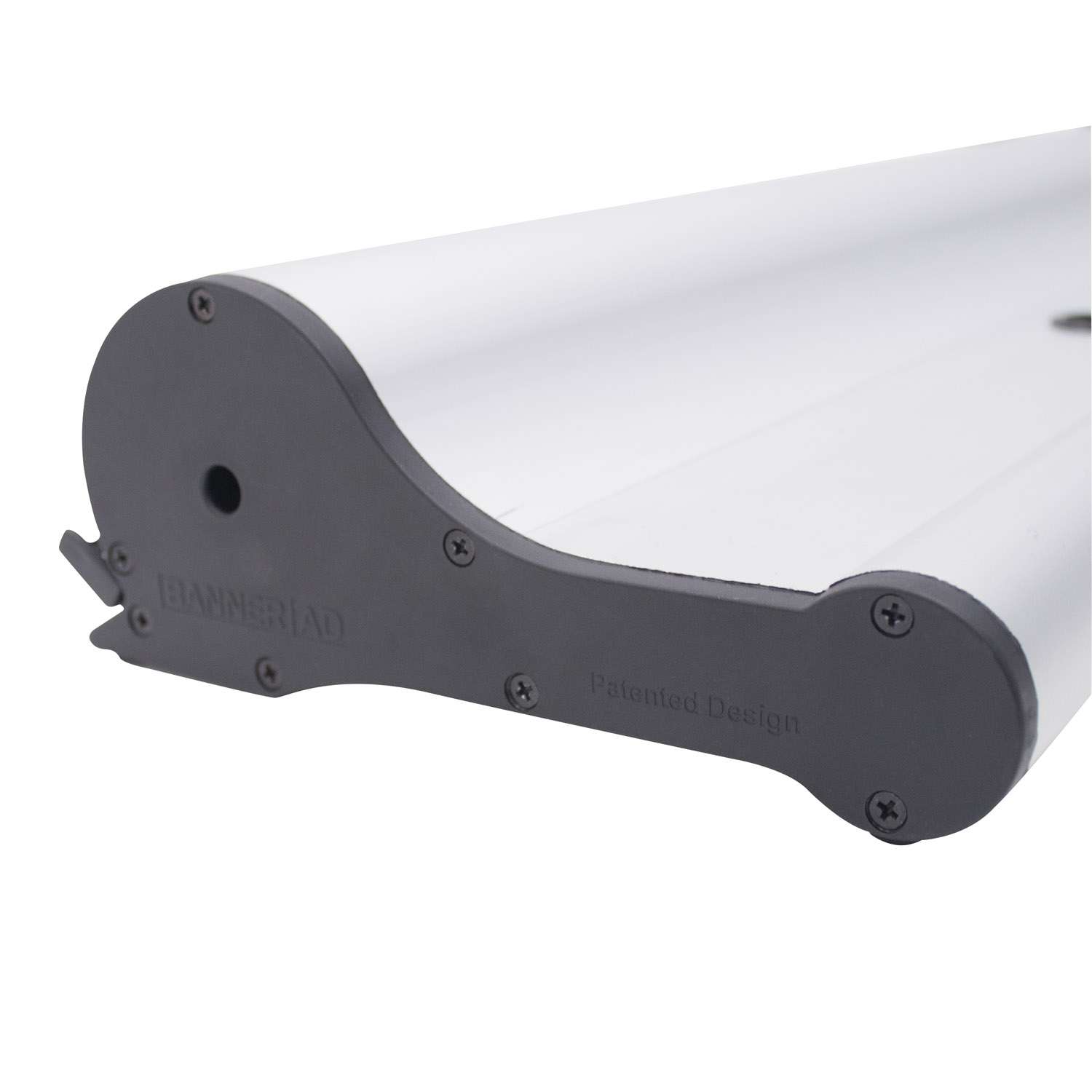 This retractor features magnetic end caps so you can link several banners and create an extra-wide display.