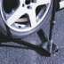 This base can be mounted under a vehicle tire to support sail sign flag hardware.