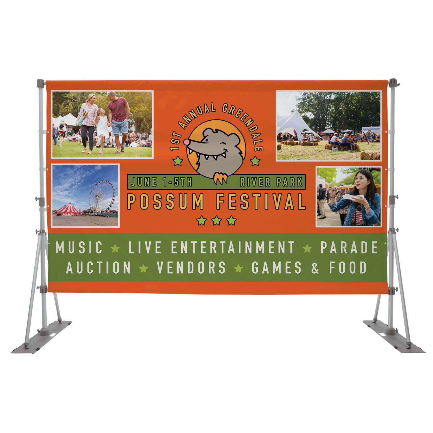 This enormous banner display is great for use in parking lots or at outdoor events.