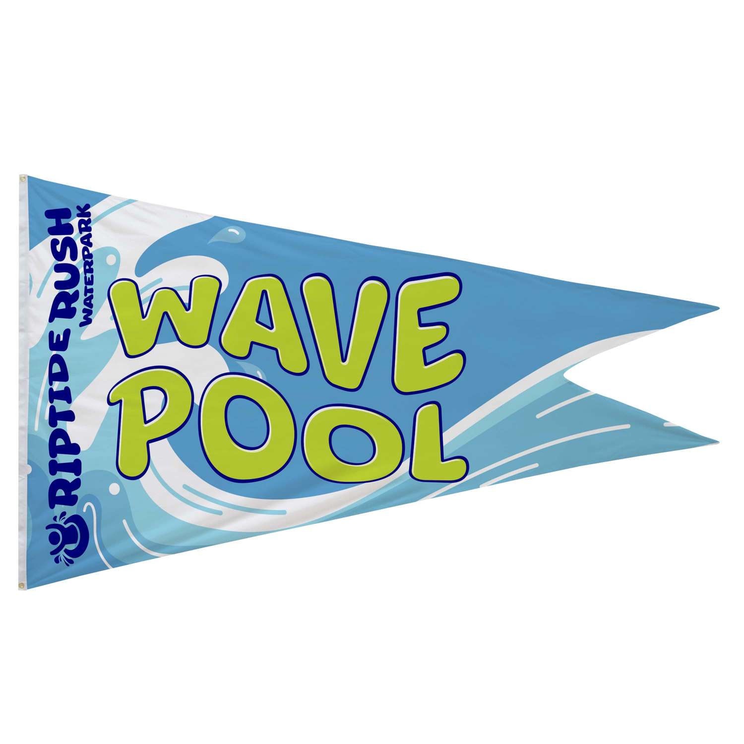 This brilliantly colored, custom-printed flag looks great in any environment. The burgee shape is popular for use with boats.