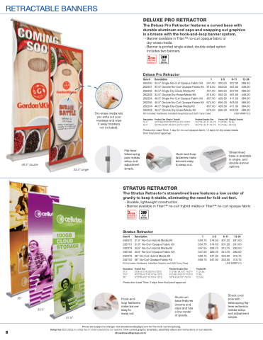 The Deluxe Pro Retractor features a curved base with durable aluminum end caps and swapping out graphics is a breeze with the hook-and-loop banner system.