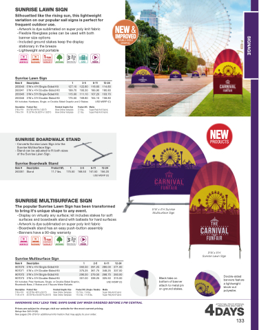 - Display on virtually any surface; kit includes stakes for soft surfaces and boardwalk stand with ballasts for hard surfaces