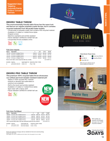 - Constructed of polyester poplin that contains 45% recycled material - Available in 3-sided or 4-sided throw styles