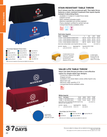 Value Lite table throws provide a cost-effective option for simple white logo designs.
