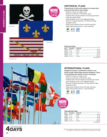 - Flags used outdoors have a 90-day warranty;