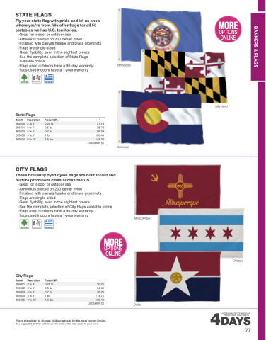 These brilliantly dyed nylon flags are built to last and feature prominent cities across the US.