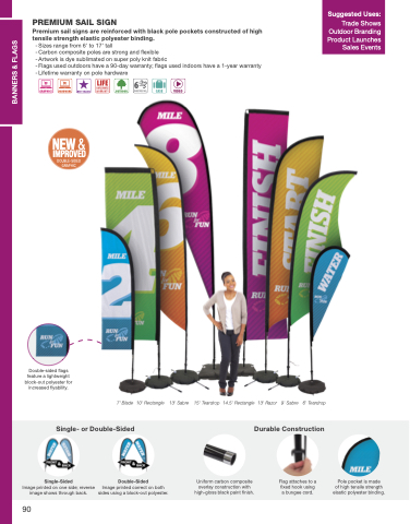 Double-sided flags feature a lightweight block-out polyester for increased flyability.