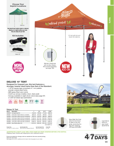 UNIMPRINTED CANOPY LEAD TIME: SHIPS SAME DAY WHEN ORDERED BEFORE 2 PM CENTRAL