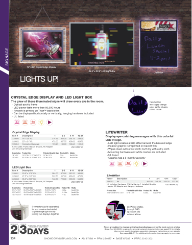 134 SHOWDOWNDISPLAYS.COM • ASI 87188 • PPAI 254687 • SAGE 67383 • PPPC 20101202