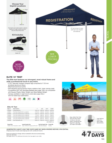 UNIMPRINTED CANOPY LEAD TIME: SHIPS SAME DAY WHEN ORDERED BEFORE 2 PM CENTRAL