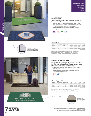 Put quality designs right at your feet. The Floor Hugger mat features a nylon yarn surface with black rubber borders and backing.