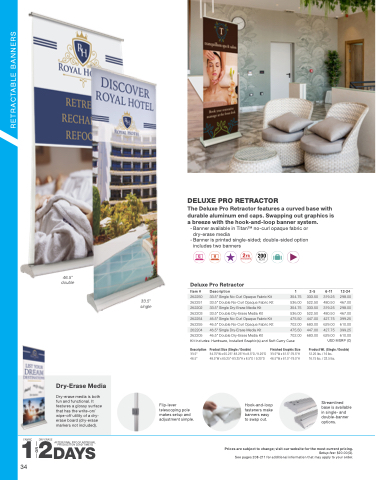 The Deluxe Pro Retractor features a curved base with durable aluminum end caps. Swapping out graphics is a breeze with the hook-and-loop banner system.